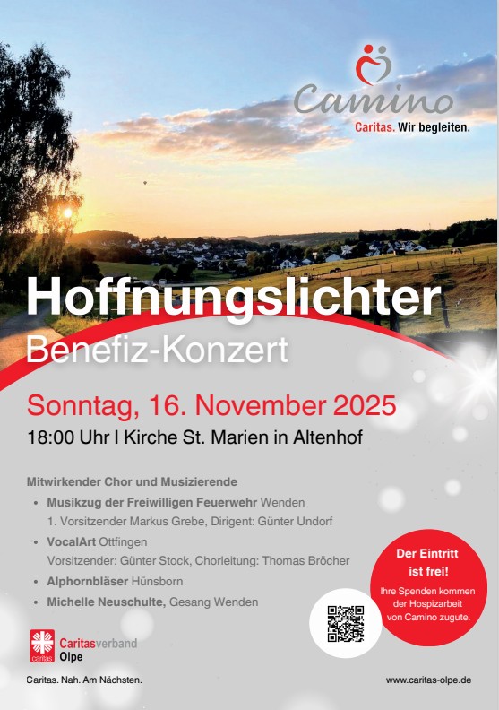 Das Hoffnungslichterkonzert steht im Zeichen von Licht, Trost und Gemeinschaft. Es bietet Raum, innezuhalten und Hoffnung zu teilen. Der Abend wird von Camino organisiert und möchte auf die Bedeutung der Hospizarbeit aufmerksam machen.