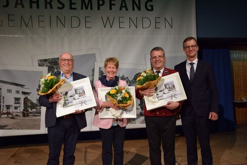 Bild (v.l.n.r.): Raimund Halbe, Christa Grünewald und Ansgar Eichert erhielten den Bürgerpreis der Gemeinde Wenden 2023. Bürgermeister Bernd Clemens freute sich mit den Gewinnern.