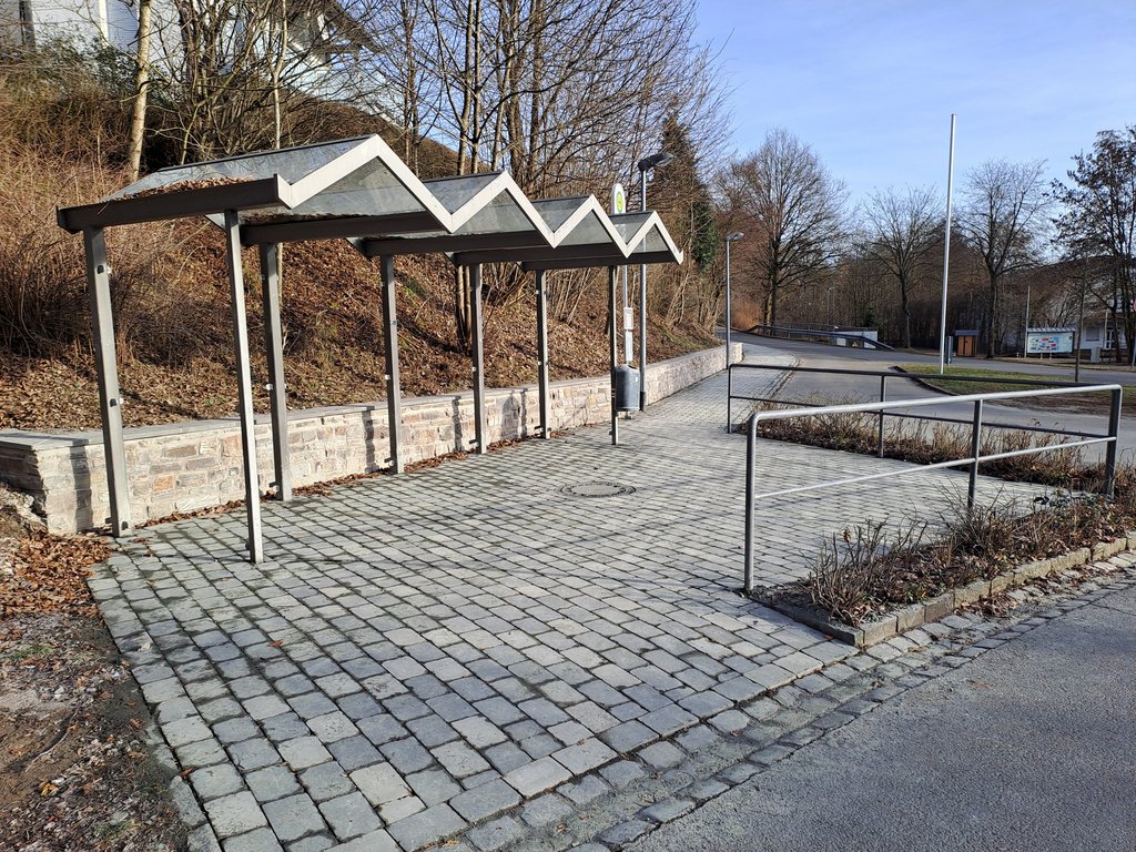 Im Zuge einer geplanten Maßnahme wurde die Bushaltestelle Hillmicke – Poststraße (Buswende) saniert. Die bestehende Mauer wurde instandgesetzt und das Pflaster vollständig erneuert. Das neu verlegte Pflaster in historisch anmutender Optik trägt dazu bei, den Charakter des Ortes zu erhalten und fügt sich stimmig in das Umfeld ein.