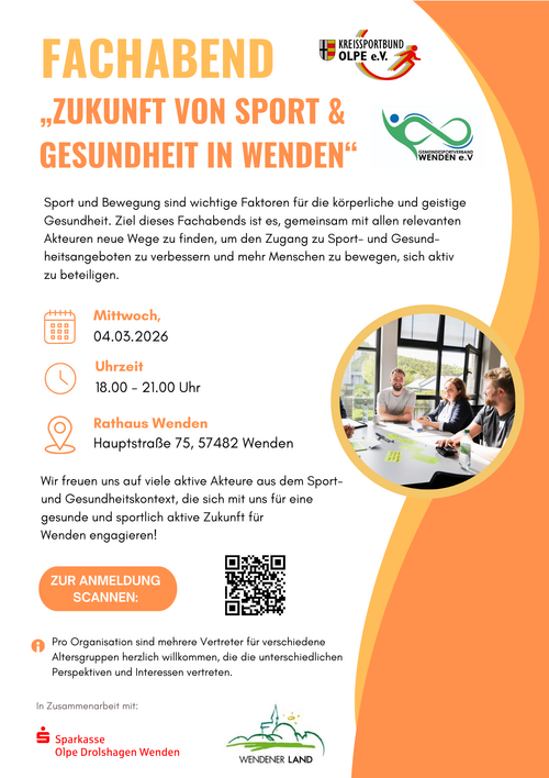 Die Gemeinde Wenden freut sich auf viele aktive Akteure aus dem Sport- und Gesundheitsbereich, die sich mit uns für eine gesunde und sportlich aktive Zukunft in Wenden zu engagieren.
