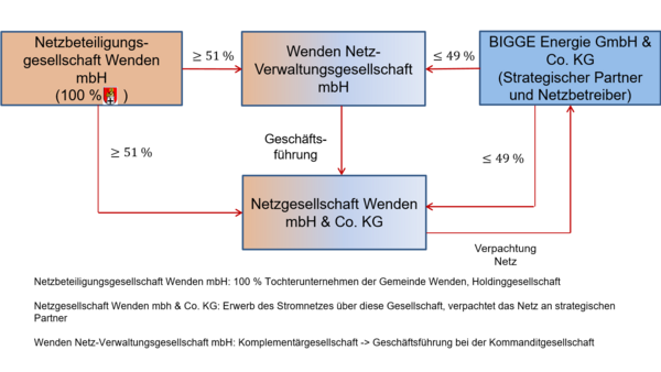 Der Gemeinderat hat in seiner Sitzung am 13.03.2012 beschlossen einen strategischen Partner zur Gründung einer von der Gemeinde Wenden dominierten Gesellschaft, welche die Stromnetze erwirbt, zu suchen. Der Netzbetrieb sollte sodann durch den strategischen Partner im Rahmen eines “Netzpachtmodells” erfolgen.